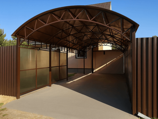 Клиент может заказать навес для автомобиля из поликарбоната в типовом исполнении или в виде индивидуального проекта. Все конструкции адаптируются под небольших или просторных участков, а также сочетаются с архитектурой дома. Возможность купить навес для автомобиля из поликарбоната недорого зависит от выбранной формы, толщины покрытия и длины пролета.
